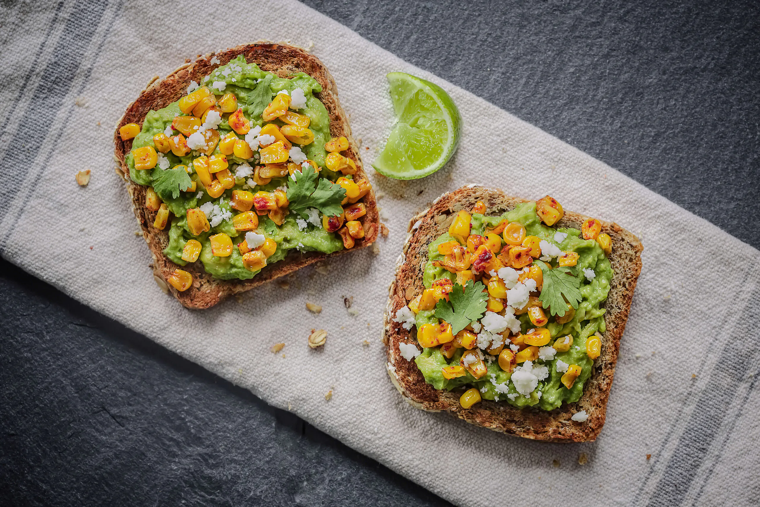 Avocado Toast with Blackened Corn & Queso Fresco